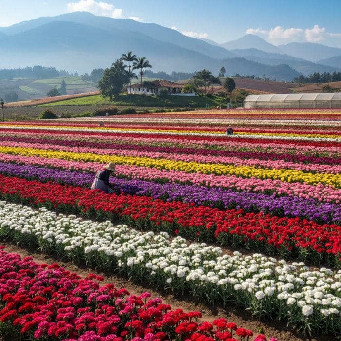 The growing conditions there are almost ideal. High-altitude farms provide cool nights, consistent daylight, and stable temperatures, which allow carnations to grow slowly and evenly.