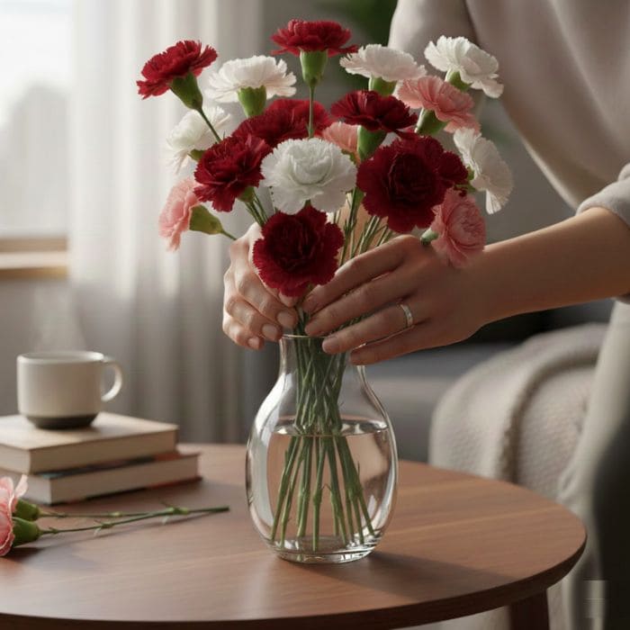 I avoid direct heat and fruit bowls, but otherwise, they adapt easily. With this simple care, carnations often last ten days or more in my home, sometimes stretching even longer.