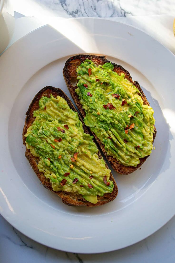 Mashed avocado on toasted bread creates a healthy snack that is surprisingly satisfying. Avocado contains healthy fats that help keep kids full longer.