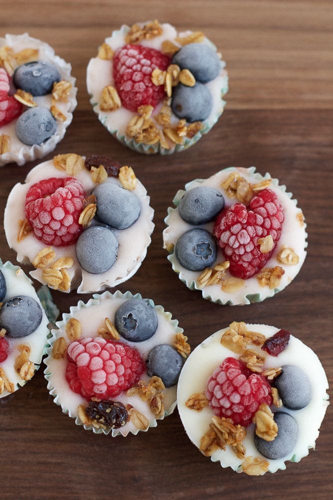Dip berries or banana slices into yogurt and freeze them for a few hours. The result is a refreshing and slightly sweet frozen snack.